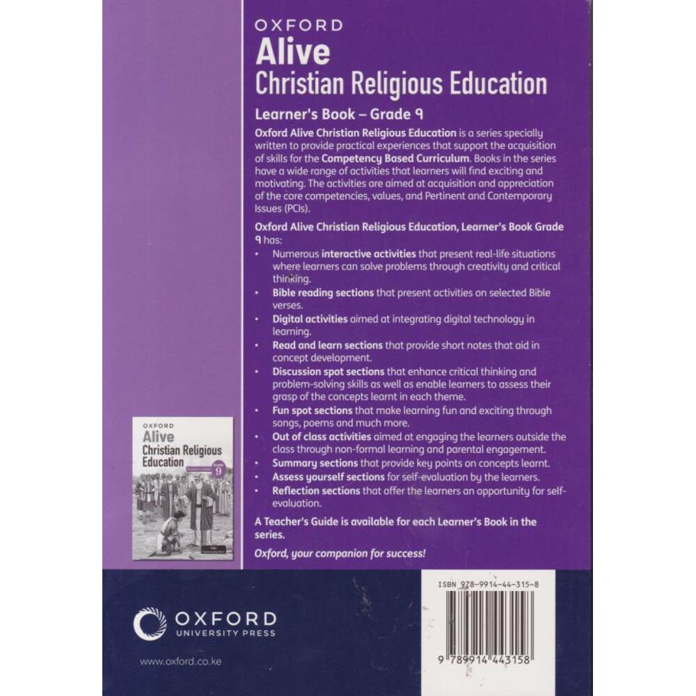 Alive CRE Grade 9 is a CBC-aligned coursebook that equips learners with Christian values, knowledge, and life skills for holistic growth. It integrates faith with real-life experiences, enabling learners to develop positive attitudes, strong moral foundations, and responsible behavior in society.