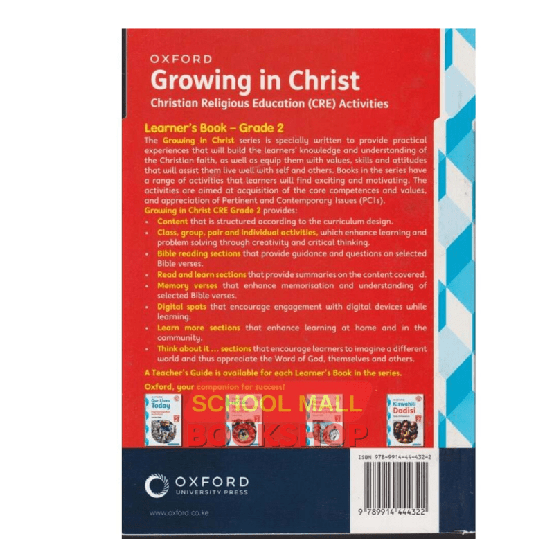 Growing in Christ Workbook Grade 2 – Oxford is part of the Christian Religious Education (CRE) curriculum in Kenya, published by Oxford University Press (OUP). This workbook is specifically designed to help Grade 2 learners deepen their understanding of Christian values, Bible stories, and how to apply Christian teachings in everyday life.