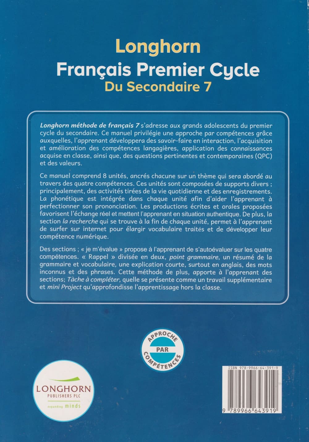 LONGHORN FRANCAIS PREMIER CYCLE GRADE 7