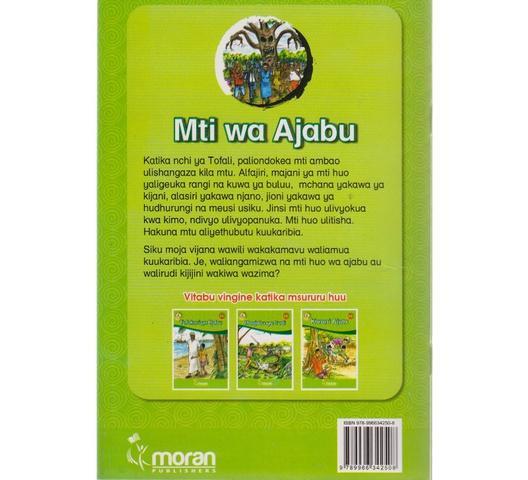 Katika nchi ya Tofali, paliondokea mti ambao ulishangaza kila mtu. Alfajiri, majani ya mti huo yaligeuka rangi na kuwa ya buluu, mchana yakawa ya kijani, alasiri yakawa njano, jioni yakawa ya hudhurungi na meusi usiku. Jinsi mti huo ulivyokua kwa kimo, ndivyo ulivyopanuka. Mti huo ulitisha. Hakuna mtu aliyethubutu kuukaribia.Siku moja vijana wawili wakakamavu waliamua kuukaribia. Je, waliangamizwa na mti huo wa ajabu au walirudi kijijini wakiwa wazima?