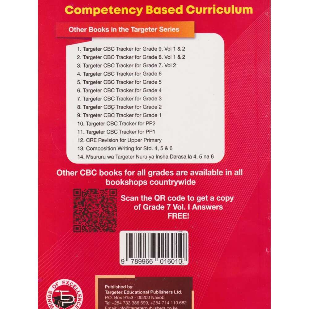 With its structured layout, consistent format, and strong emphasis on competency development, Targeter CBC Tracker Grade 7 Volume 1 serves as an essential guide for learners transitioning into junior secondary and developing the skills they need for future academic success.
