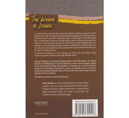 G. Chocha lives a charmed life in periurban Maua, spending most of his time playing pool with his friends and occasionally engaging in small businesses. However, there is a problem. The girl he loves Is in love with his best friend and this is threatening to destroy his world and his sanity, until one day he gets the chance to travel and study abroad. His world view changes dramatically as he embarks on an exciting yet perilous journey of self-discovery. What is more, he not only falls in love again but wins a jackpot that could transform his life upon his return to his home town. The Weaver of Dreams is a story of hope and victory over great odds. Young readers everywhere will love and easily identify with it.