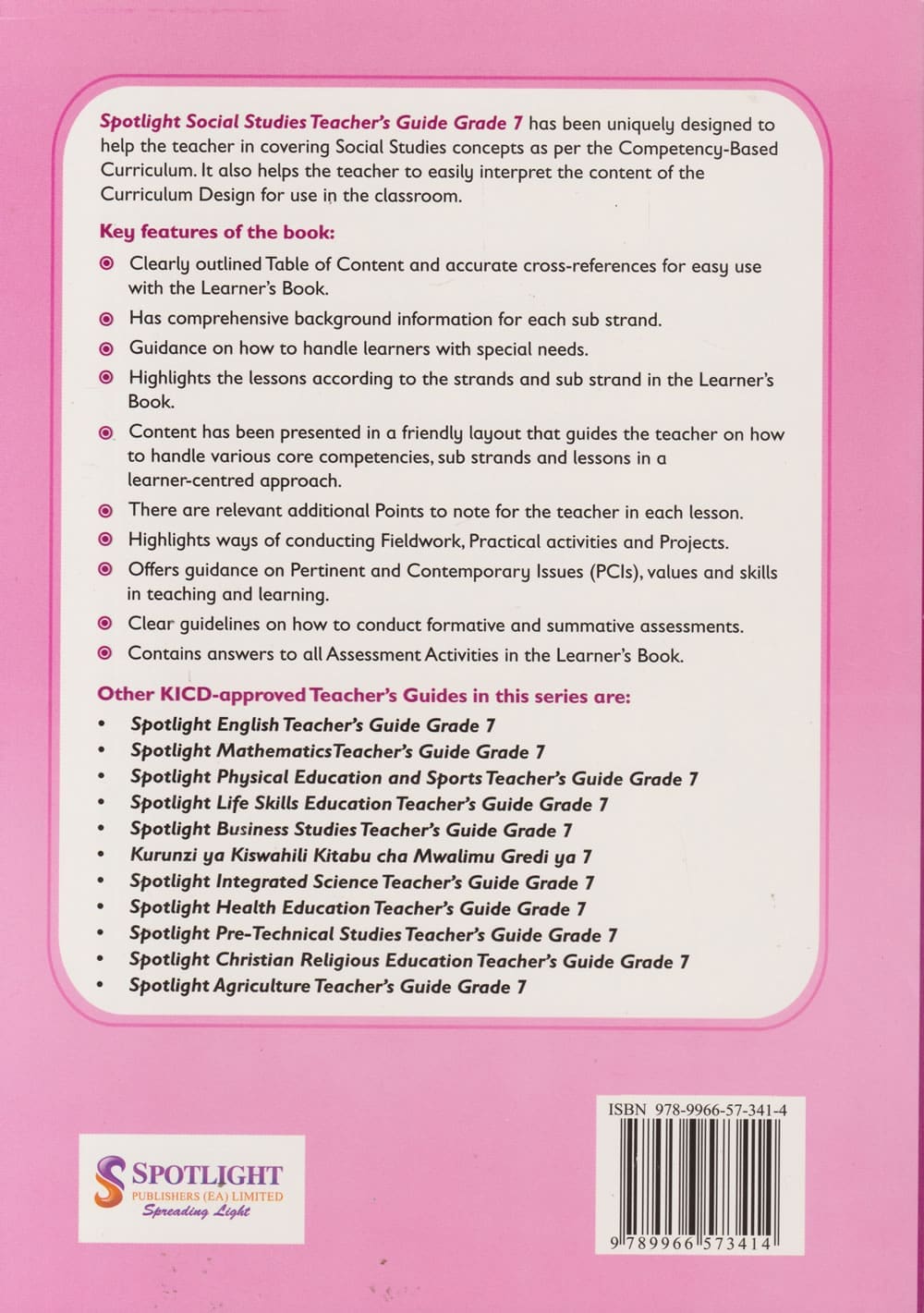 TRS Guide Spotlight Social Studies Grade 7 is a teacher’s resource book designed to make classroom delivery more effective and interactive. It aligns with the CBC requirements and provides clear lesson plans, detailed notes, and engaging methodologies to guide teaching.